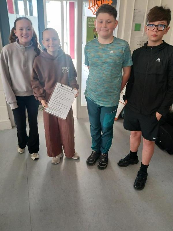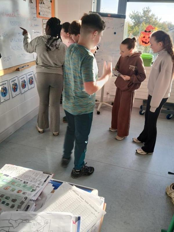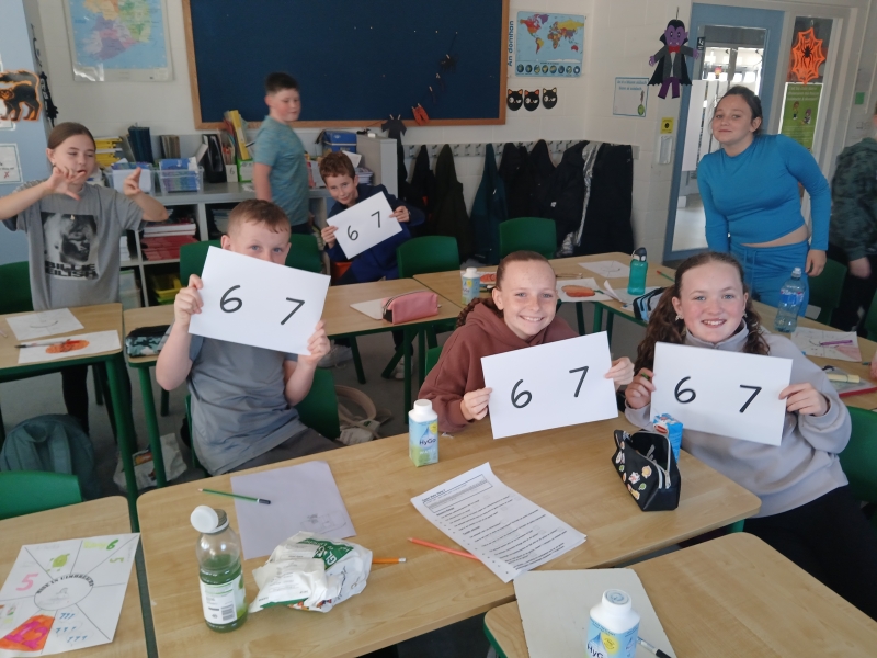 Bhí seachatin gnóthach againn i Rang 6 an tseachtain seo caite le linn Seachtain Mhatamaitice. Bhí muid ag imirt cluichí, ag déanamh ealaín agus rinne muid conair mata.