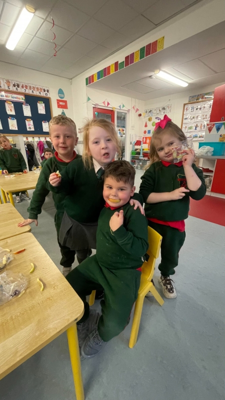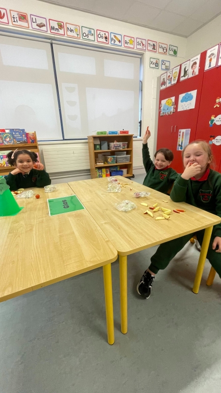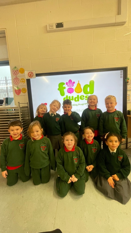 Tá ár Naíonáin bheaga ag baint an-taitnimh as clár Food Dudes, ag triail a lán bianna sláintiúla nua. Tá siad ag foghlaim thábhacht an ithe shláintiúil agus tá siad lán fuinnimh ó roghanna maithe bia a dhéanamh!